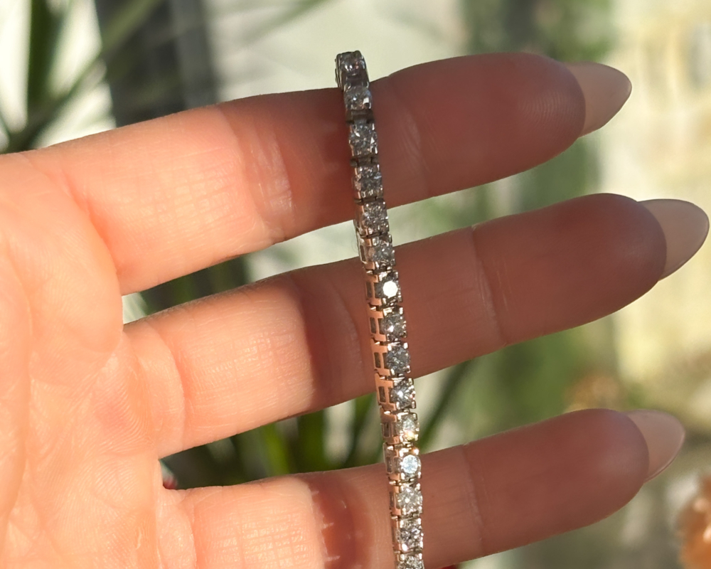- DIMENSIONS: Approx: 5.5ct diamond weight, SI2 clarity, H/I colour. Just under 8 inches long. Each diamond is 3mm diameter. 3mm thick.