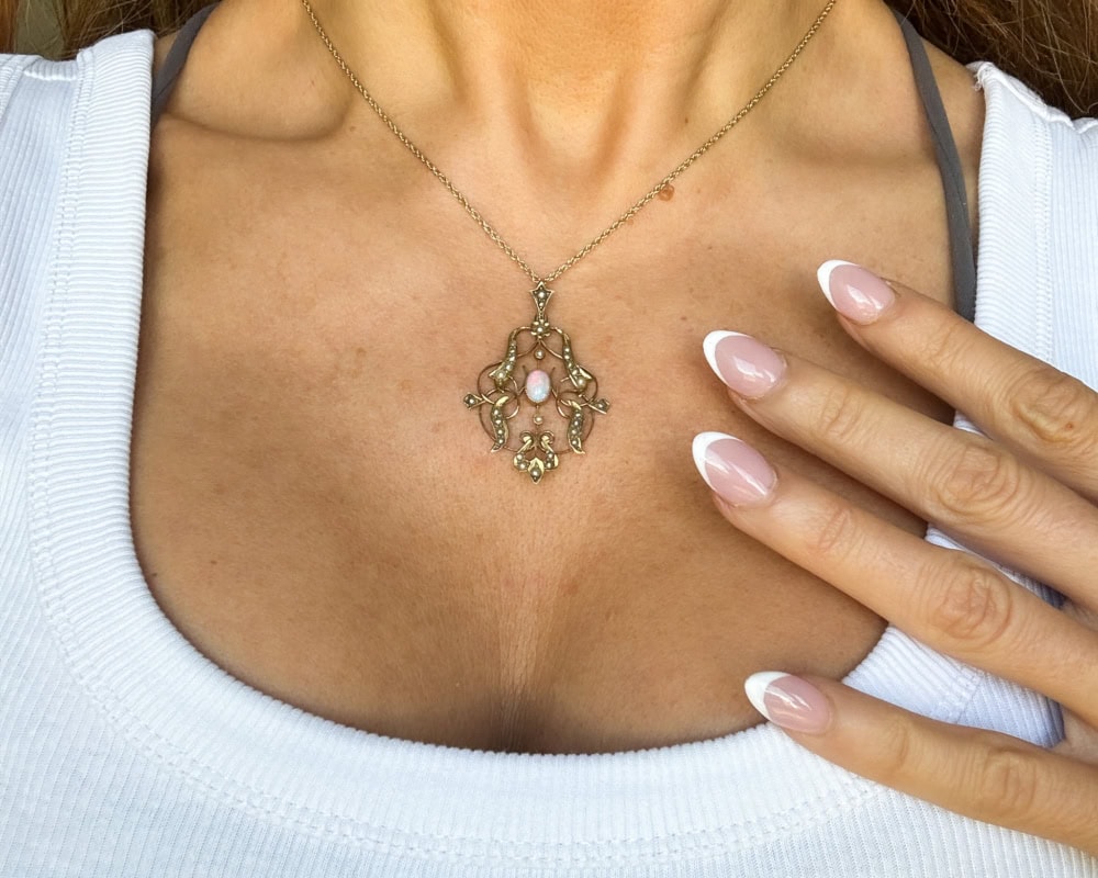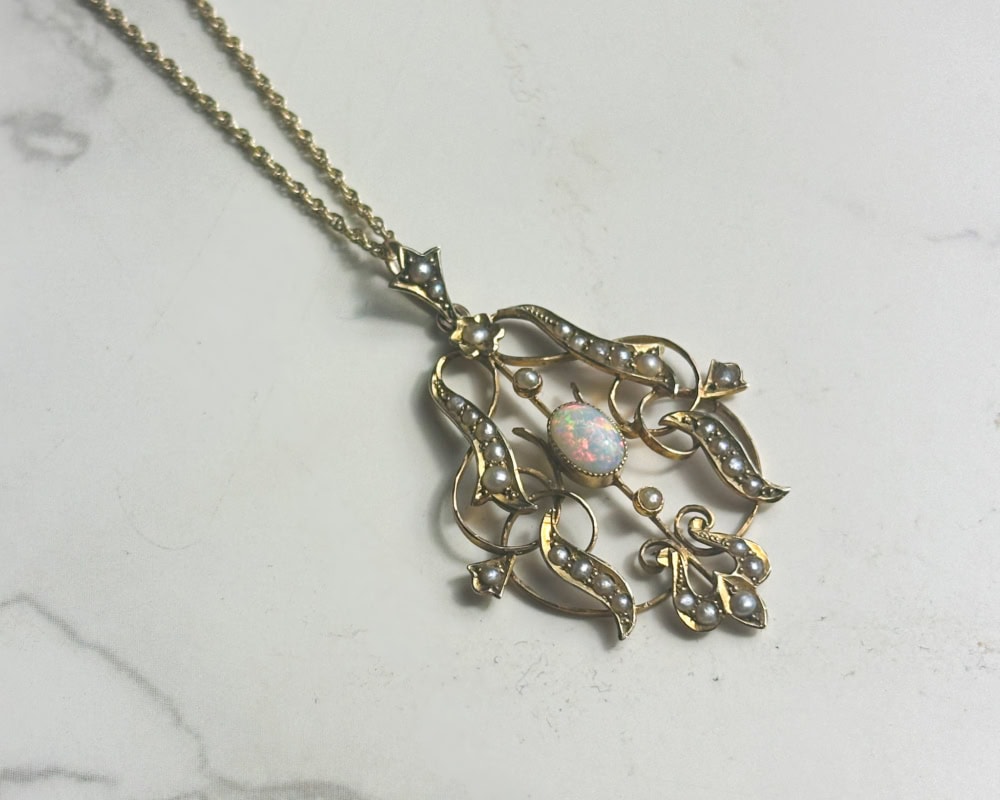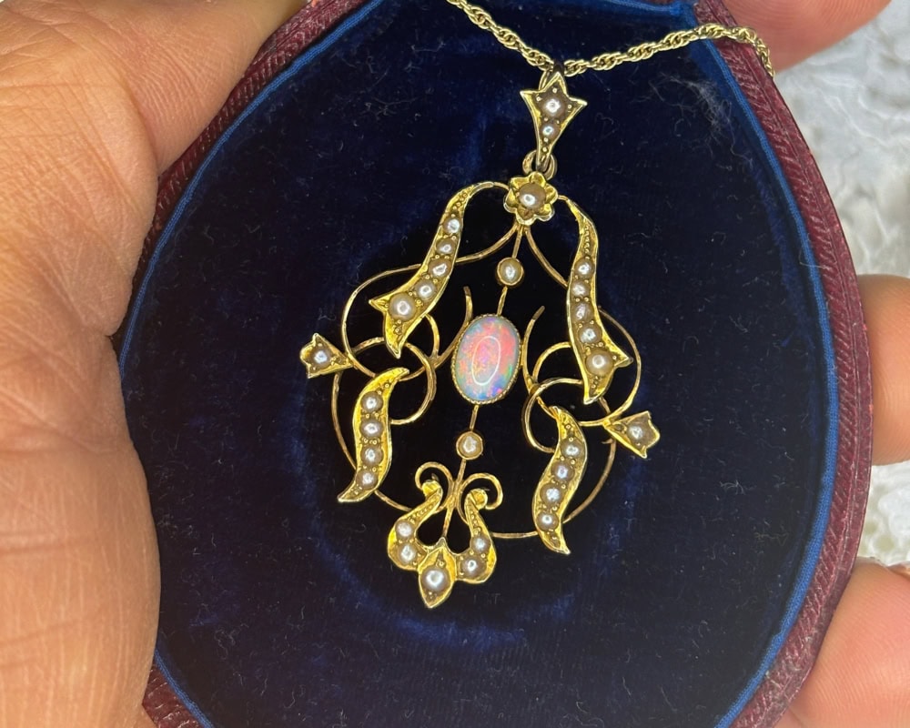 Antique Art Nouveau Opal and Seed Pearl Pendant