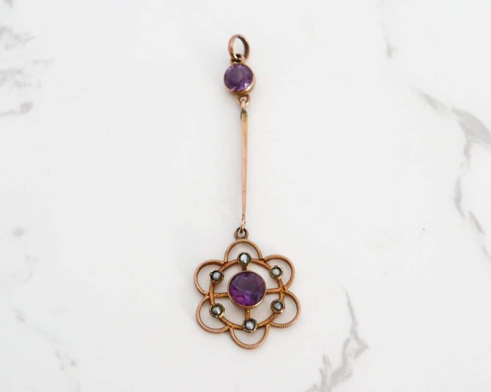 Antique Edwardian Amethyst and Seed Pearl Pendant