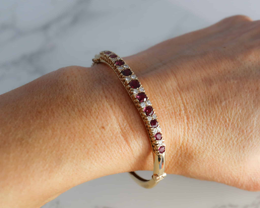 - DIMENSIONS: Approx 7.5 inches circumference, inner diameter 55mm x 48mm. Approx 1ct rubies, 0.5ct diamonds.