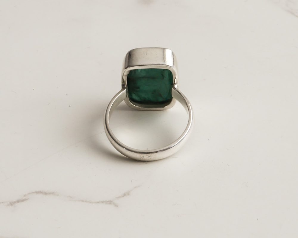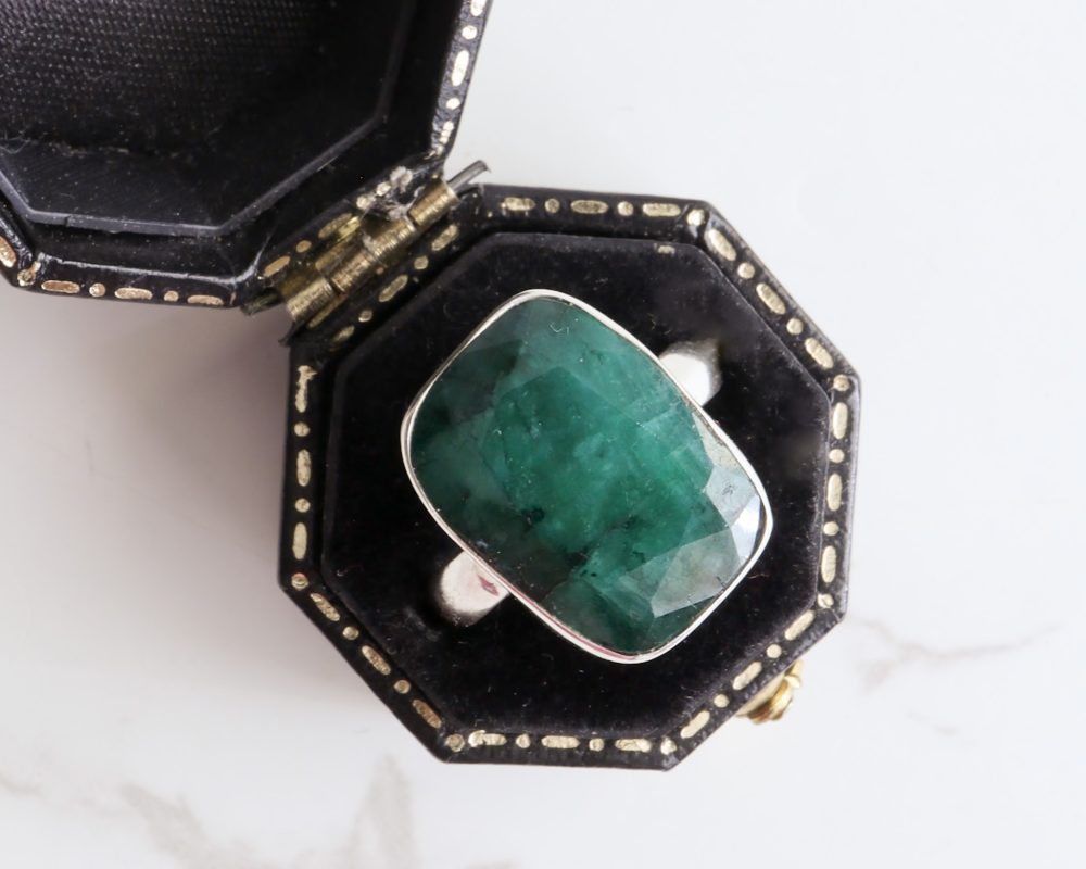 A contemporary silver and emerald ring in an attractive lozenge shape. The simple setting of this ring accentuates the vivid colour of the uncut, cabochon emerald. Wear this ring if you’re looking for the perfect pop of uplifting colour to elevate any outfit. Our silver cabochon stone collection provides real uncut precious stones at an affordable price.