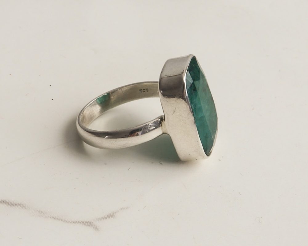Silver and Cabochon Emerald Ring