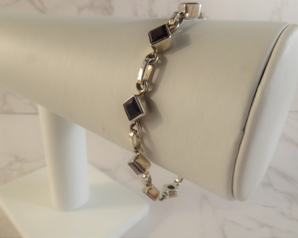 DIMENSIONS: Approx 7.5 inches long. Each garnet link is approx 5mm x 5mm.