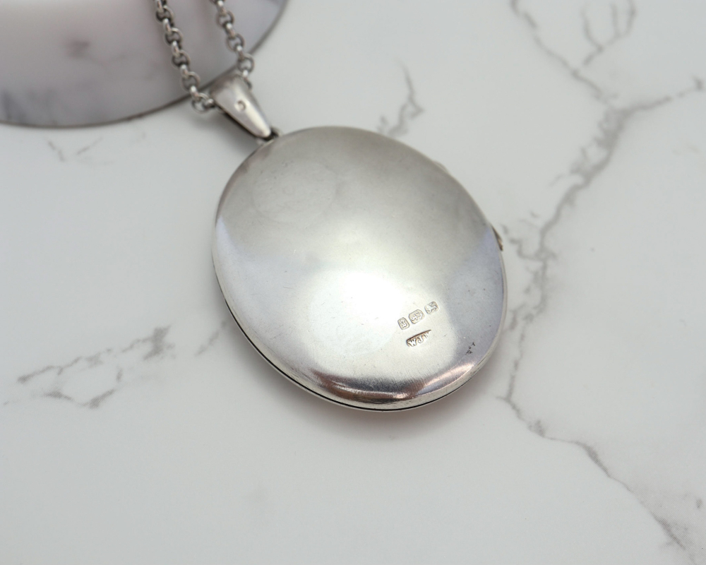 ERA/HALLMARK: Victorian locket stamped Birmingham 1881. Modern chain stamped 925.