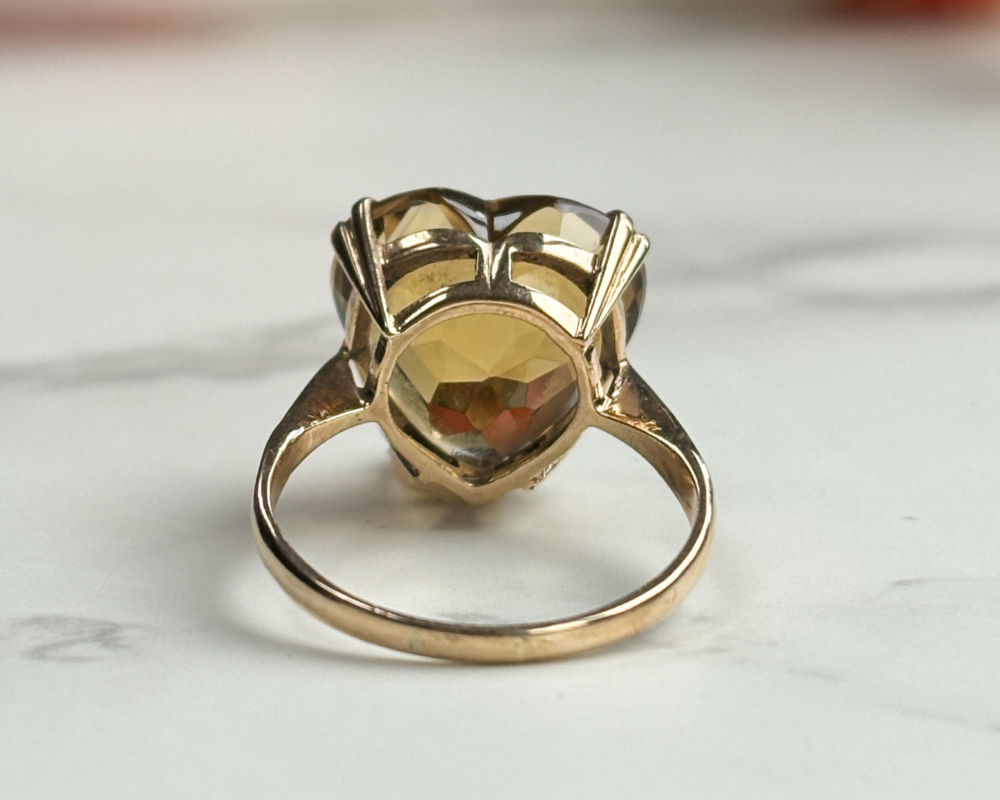 Vintage 9ct Gold Citrine Heart Ring