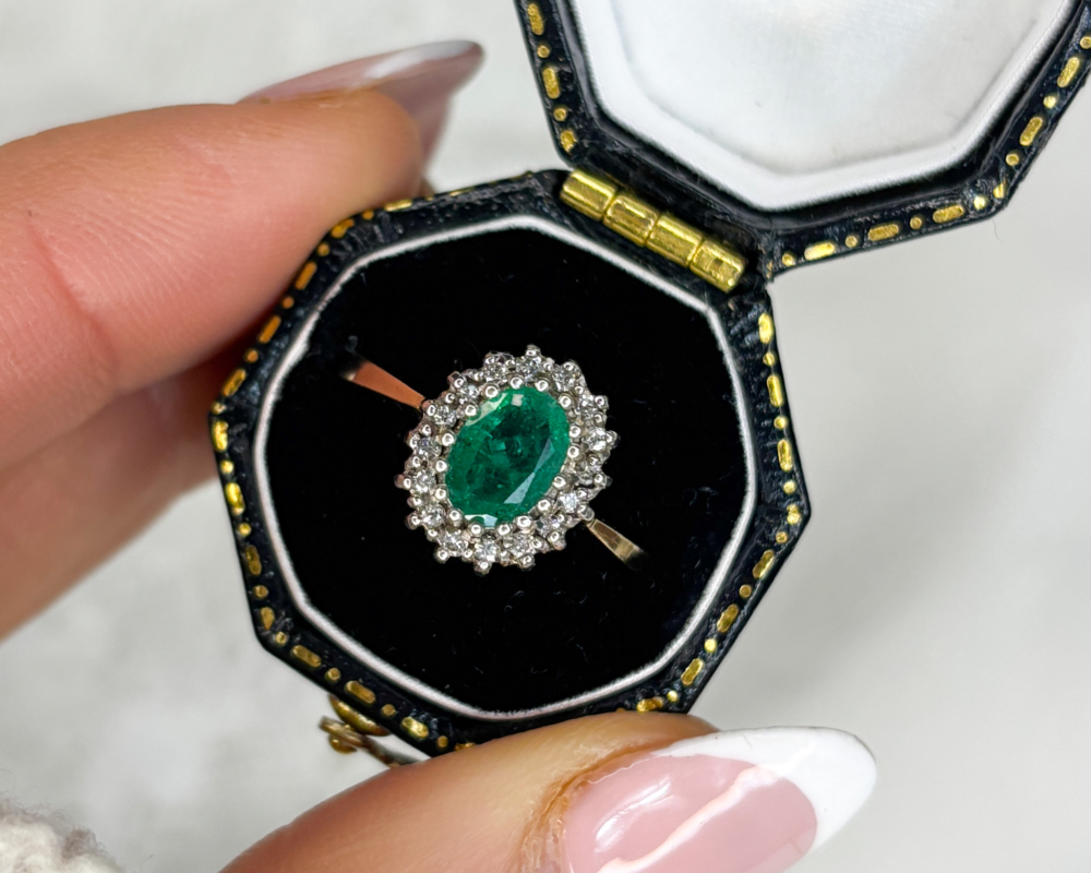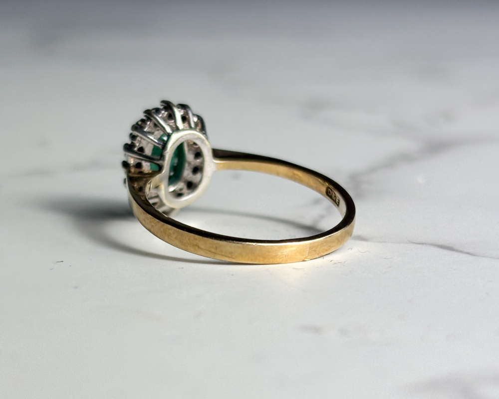 Vintage Emerald and Diamond Cluster Ring 9ct